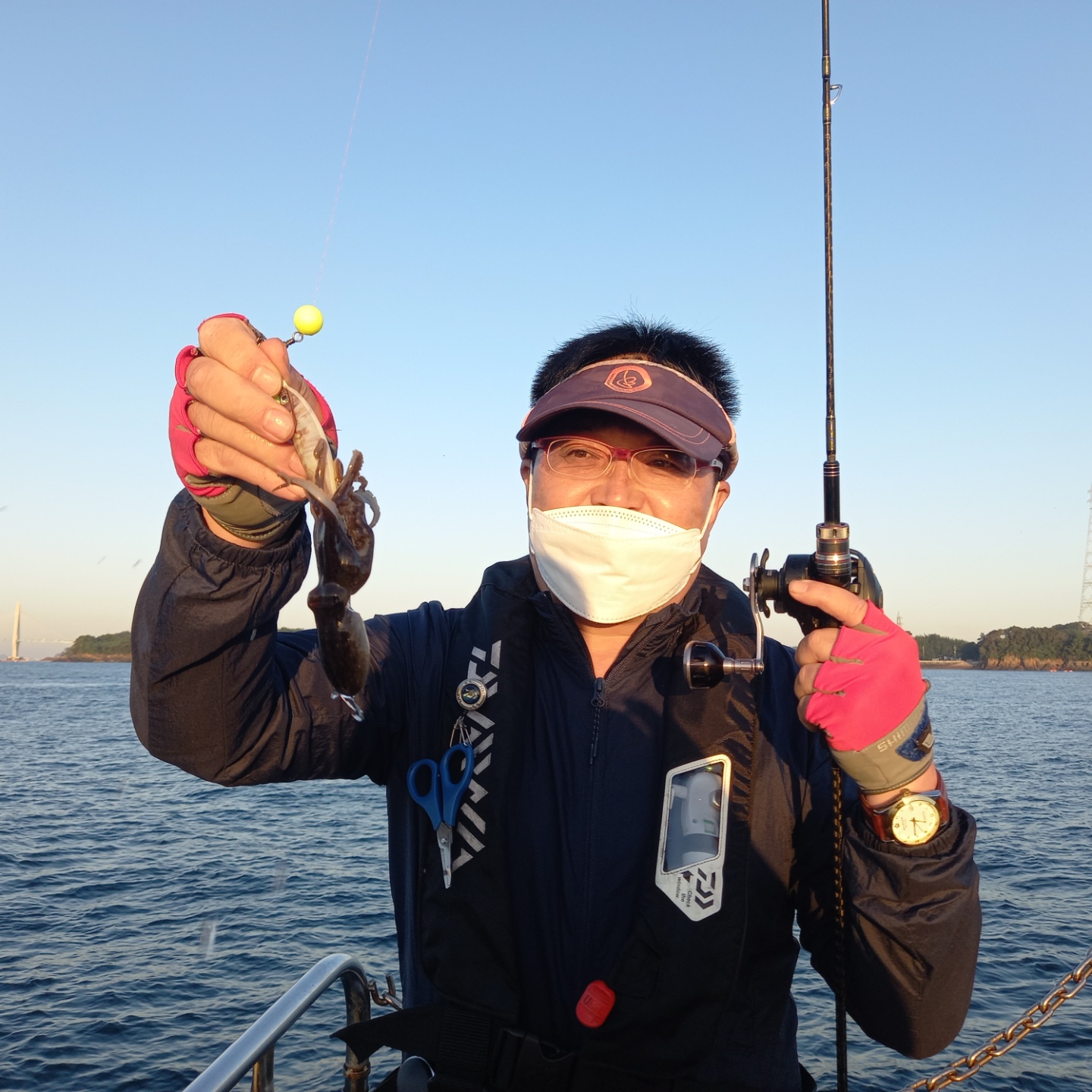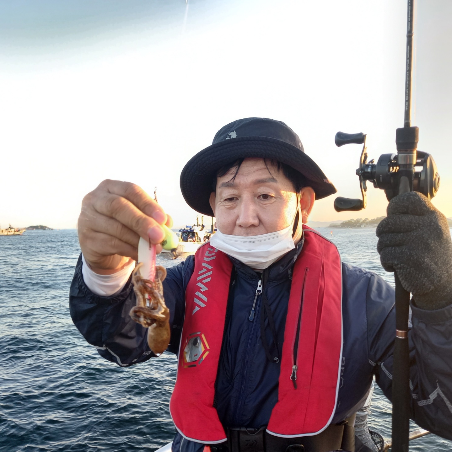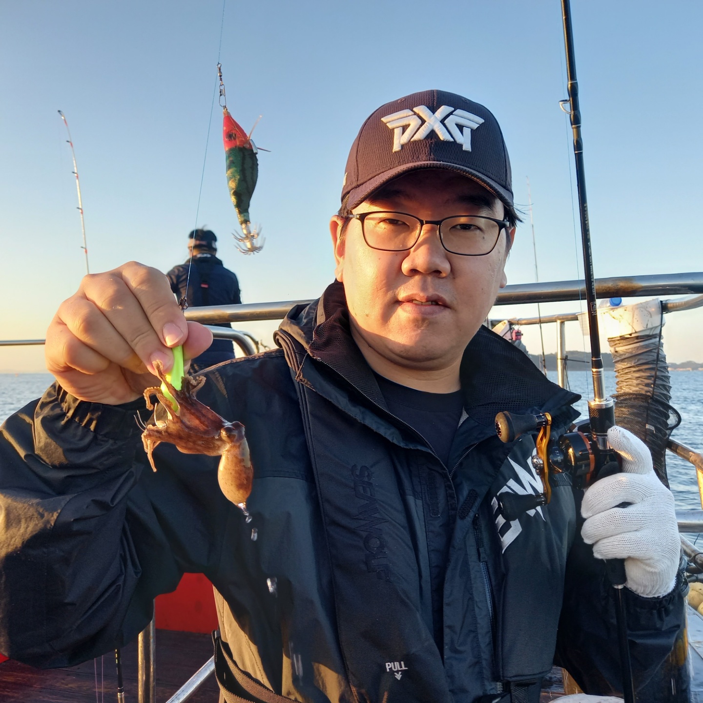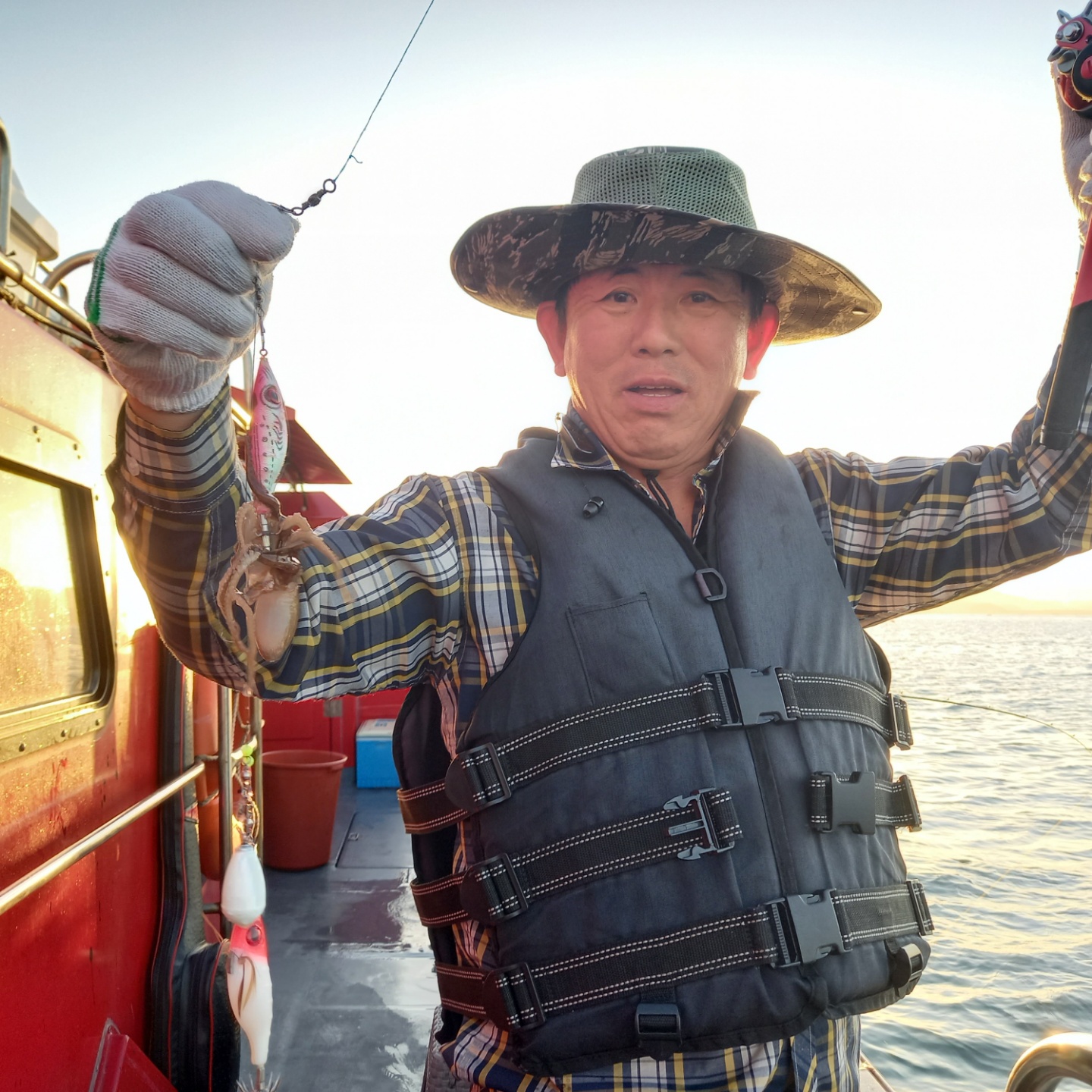 태풍의 영향으로 인해 선단에서 평소보다 출항시간을 늦게 계획하였지만다행히 주의보가 빨리 해제되어 계획보다 일찍 출발할수 있었습니다.늦게 출항하는만큼 마감시간을 연장해서 진행하라는 선단의 공지가 있었고이에 맞추어 진행하였습니다.우려와 달리 꾸준히 주꾸미들이 올라와 주었고 조사님들 모두 열심히 낚시를 즐겨주셨습니다.이중 이호상 조사님께서 마지막까지 최선을 다해주시며 장원에 선정되셨습니다축하드립니다.연장하며 늦게 복귀하여 피곤 하셨을 조사님들 모두 고생많으셨습니다.안전하게 귀가하시기 바랍니다.감사합니다.