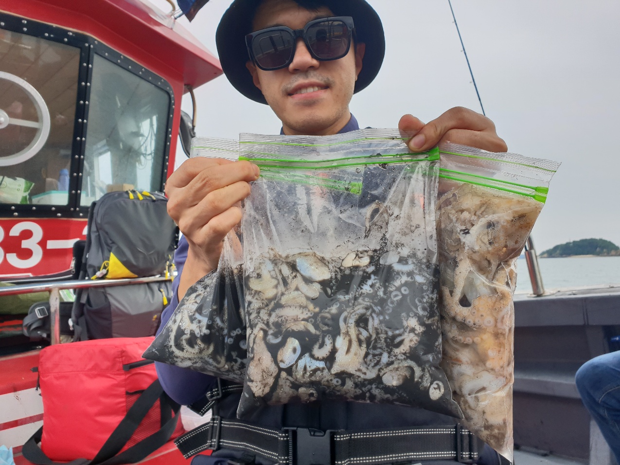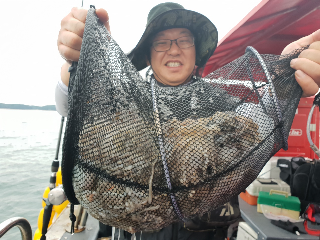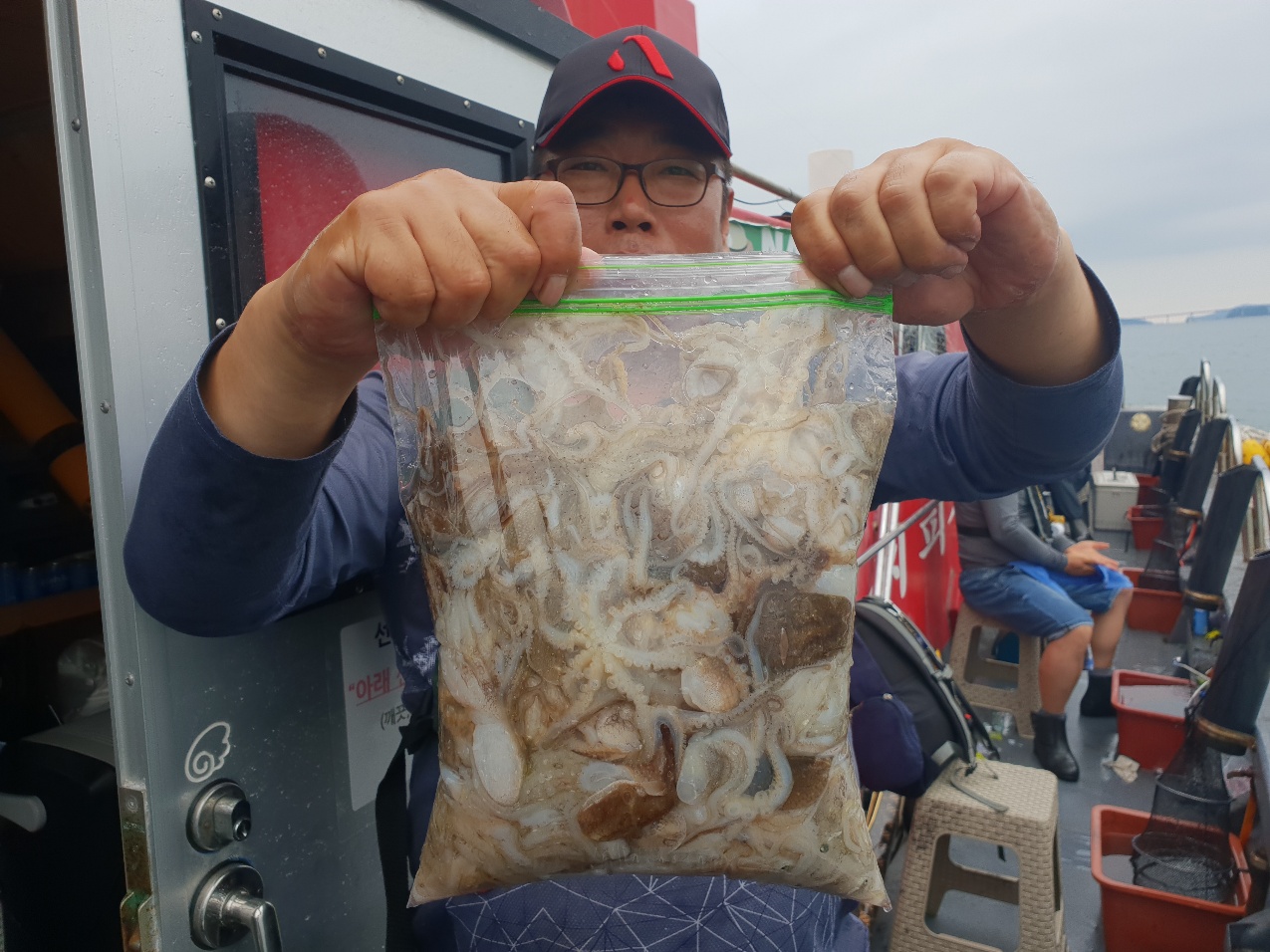 물때가 워낙 좋은 물때로 소문이 나서 그런지 충남배들은 대다수가 출항한 하루였습니다.대천 앞바다까지 가려고 보니 배들이 너무 많아서 그냥 천수만 내에서 했습니다.다행이도 쭈꾸미가 꾸준이 나와주었고 조사님들이 잘 잡아 주셨습니다.수심이 깊어 올리시다 떨어뜨리는게 많다 보니 초보분들과 고수분의 차이가 좀 있었습니다.제일 잘 잡으신분이 10.88키로 쿨로를 가득 채우시고(작은 쿨러긴 했지만...)비교적 잘 잡으신분이 7~8키로평균적으로 5키로 이상 잡았습니다.