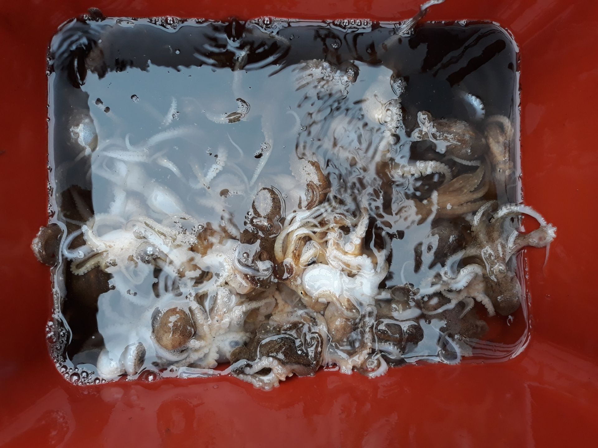 물때가 워낙 좋은 물때로 소문이 나서 그런지 충남배들은 대다수가 출항한 하루였습니다.대천 앞바다까지 가려고 보니 배들이 너무 많아서 그냥 천수만 내에서 했습니다.다행이도 쭈꾸미가 꾸준이 나와주었고 조사님들이 잘 잡아 주셨습니다.수심이 깊어 올리시다 떨어뜨리는게 많다 보니 초보분들과 고수분의 차이가 좀 있었습니다.제일 잘 잡으신분이 10.88키로 쿨로를 가득 채우시고(작은 쿨러긴 했지만...)비교적 잘 잡으신분이 7~8키로평균적으로 5키로 이상 잡았습니다.
