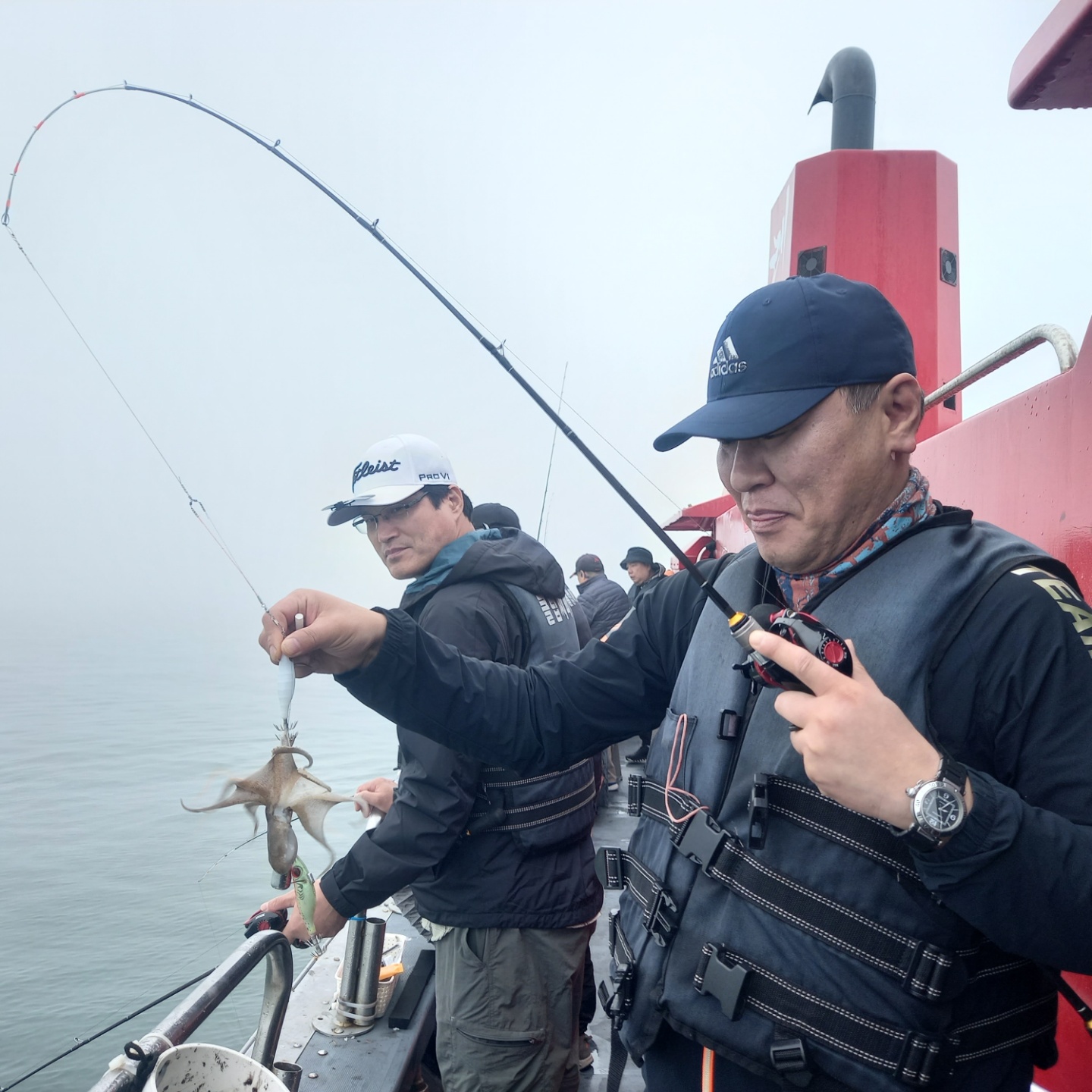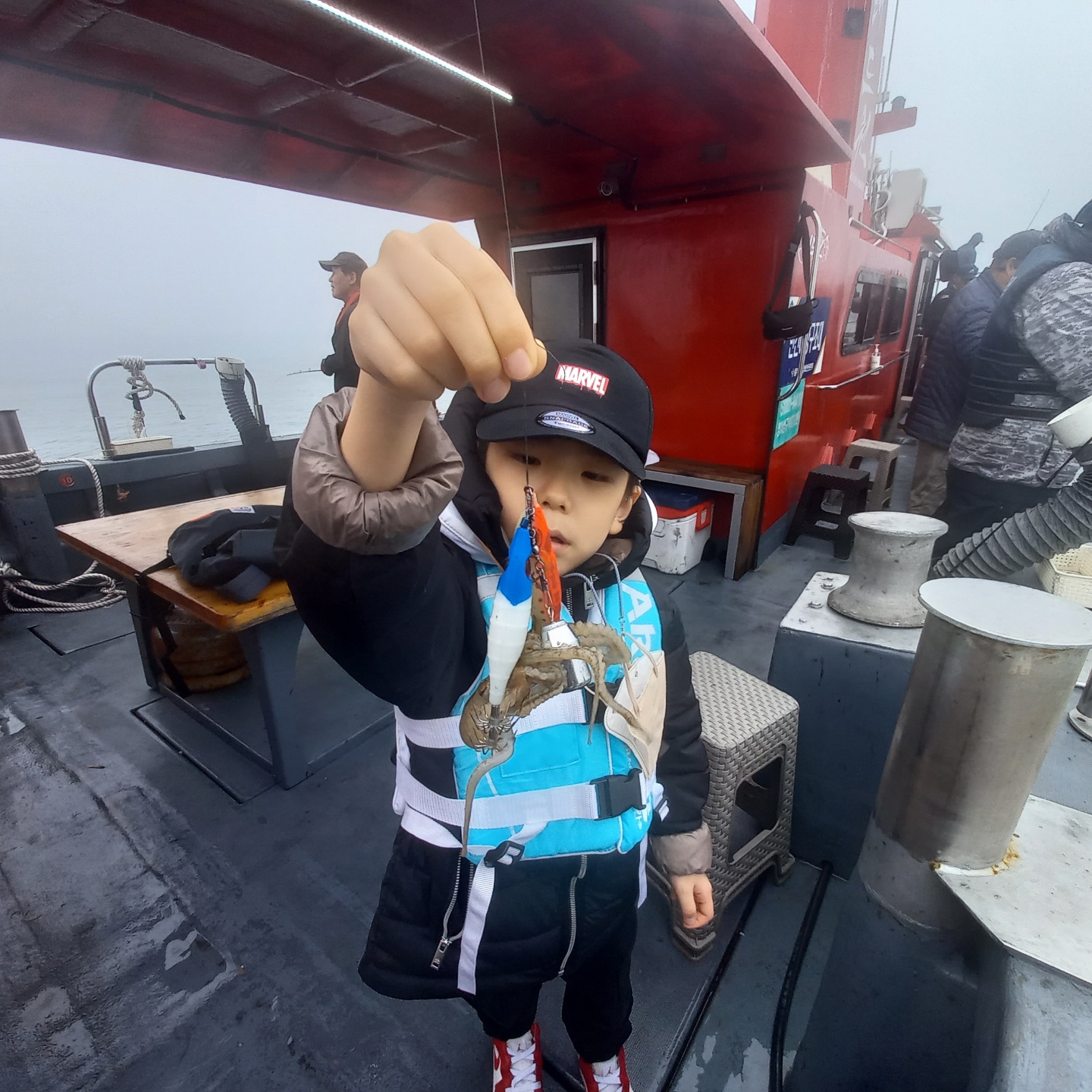 오늘 승선 하신 조훈기 조사님 일행분들 중에 어린이 조사님이 아버님의 지도아래 자신의 키보다 커다란 로드로 도움없이 연신 주꾸미를 올려주는 모습이 인상 깊었습니다.