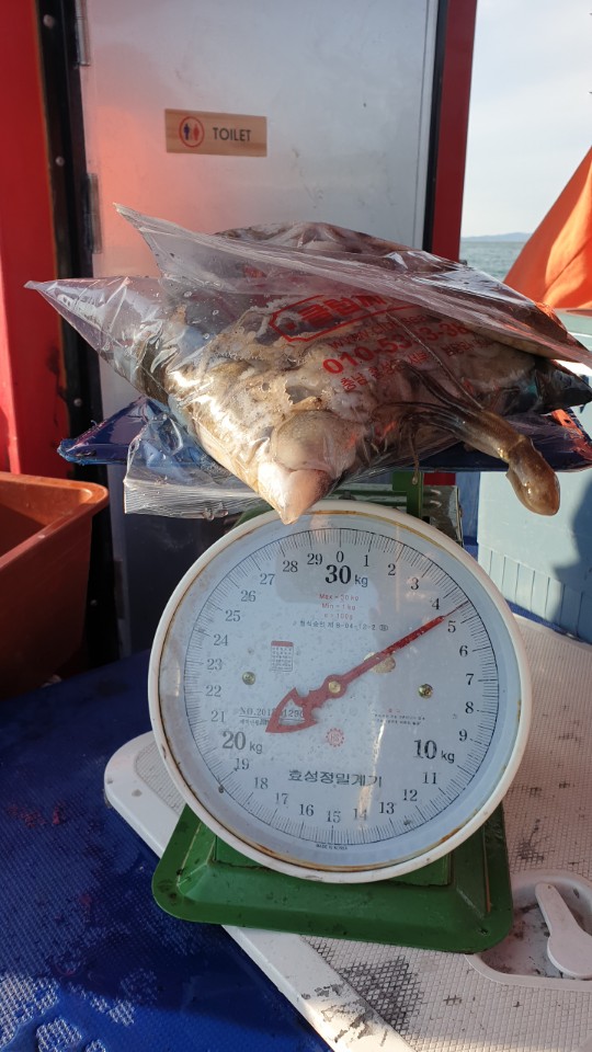 오늘도 변함없이 고수와 초보의 차이가 많이 나는 하루였네요..물이 쎌 수록 차이가 심해 지는 듯 합니다.역쉬 오늘도 스스로 부족함을 많이 느끼는 하루 였습니다.아.. 오늘 오시고 반갑게 인사해주신.. 그러나 제가 못 알아본.... 조사님들.. 사과드릴께요^^몇 분이나 오랜만이라 인사하시고 심지어 올해 몇번이나 제 배 타셨다는데 어찌 이리도 사람을 못 알아보는지ㅜㅠ죄송스러울 따름이네요...ㅜㅜ가뜩이나 얼굴 기억을 못하는 터에 낚시 하실때 복장이 다음에 뵈도 알아보기 힘든 복장들이 많아서라고 굳이 변명해봅니다.^^사실 많은 분들이 오가시고 또 낚시를 나가면 다음 포인트 선정이나 라인잡는거.. 줄잡는거등등 신경쓸 일이 많아서 대화를 하면서도 시선이 다른 곳으로 가있는 일이 많다보니 얼굴을 제대로 못보는 경우가 흔해서 그런 거니 널리 양해해 주시고 먼저 아는 체 부탁드릴께요...절대 제가 소홀이 생각해서 그런게 아니란건... 알아주시구여...하여간 오늘 하루도 즐겁게 보내주셔서 감사했습니다...^^들어올때 좀 정신이 없어서 3분조황만 대표로 올리려다가 한분 조황을 빼먹고 부부끼리 같이 잡으신 저울 사진만 찍었네요...^^첫번째 저울사진이 부부끼리 잡으신 사진인 듯 합니다.전체적으론 평균 3-4킬로 정도 잡으신 평범한 사리때 조황이었습니다...