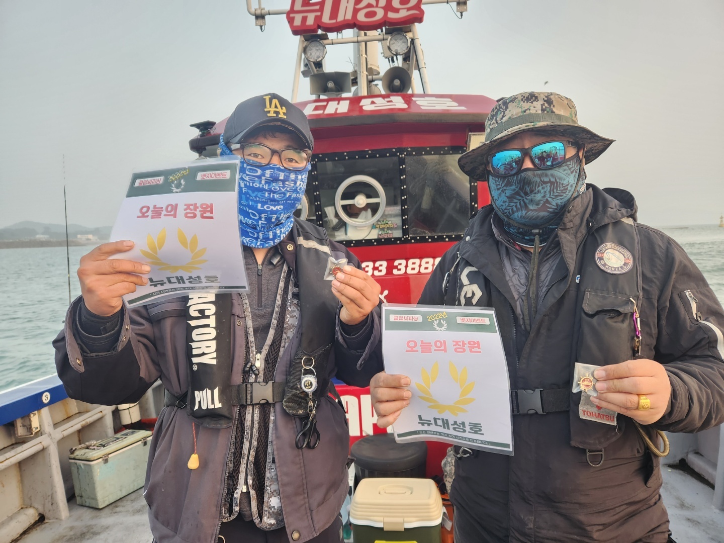 오늘도 대성호는 우리 손님들과 완죤 신나게 놀다왔습니다~오늘은 여성파워가 대단했던 하루였던거 같습니다생애 첫 낚시하신 좌현 세분중 두분이 여성분인데 랜탈대 가지고 3짜 4짜 쌍걸이에 방맹이 놀래미에 정말 대단했고우현에 내일 또 타시는 여성분도 잡았다하면 개우럭에, 3짜 쌍걸이를 하시니 옆에 계셨던분들이 얼마나 부러워 하시던지...ㅋ 암튼 재미지게 잘 놀다왔네요~~   장원 : 유♡영  23수 축하드립니다~~~대부분 10여수이상 하셨습니다~싸이즈는 5짜 4짜 3짜~거기에 참우럭까지물론 작은것도 있습니다~