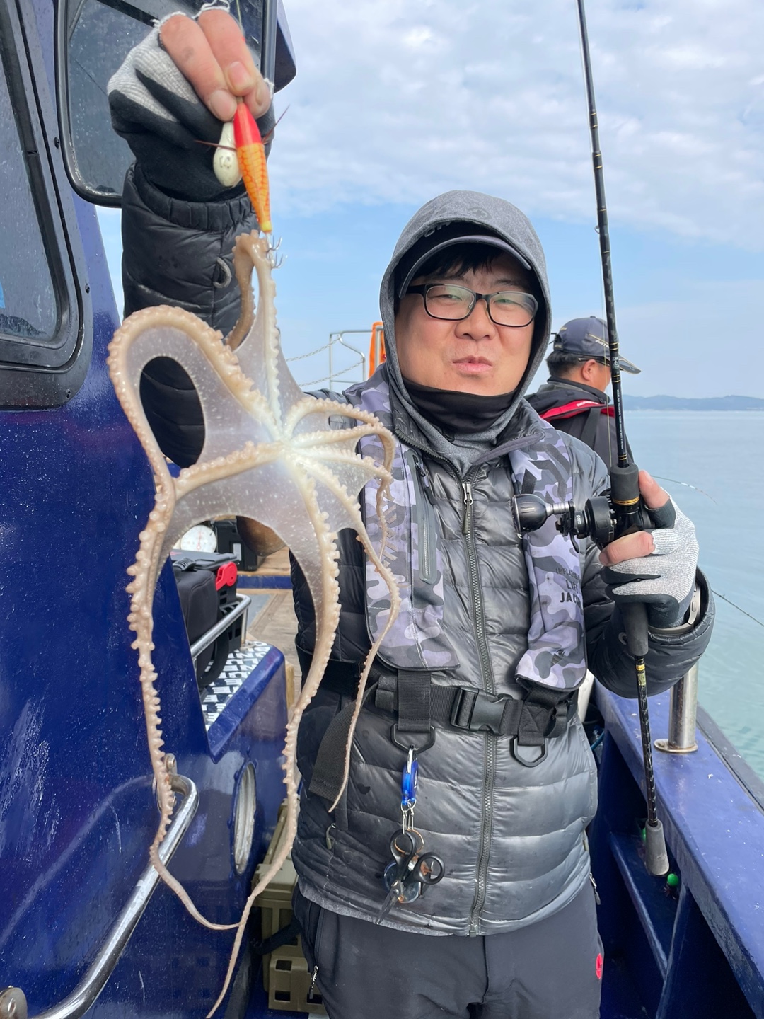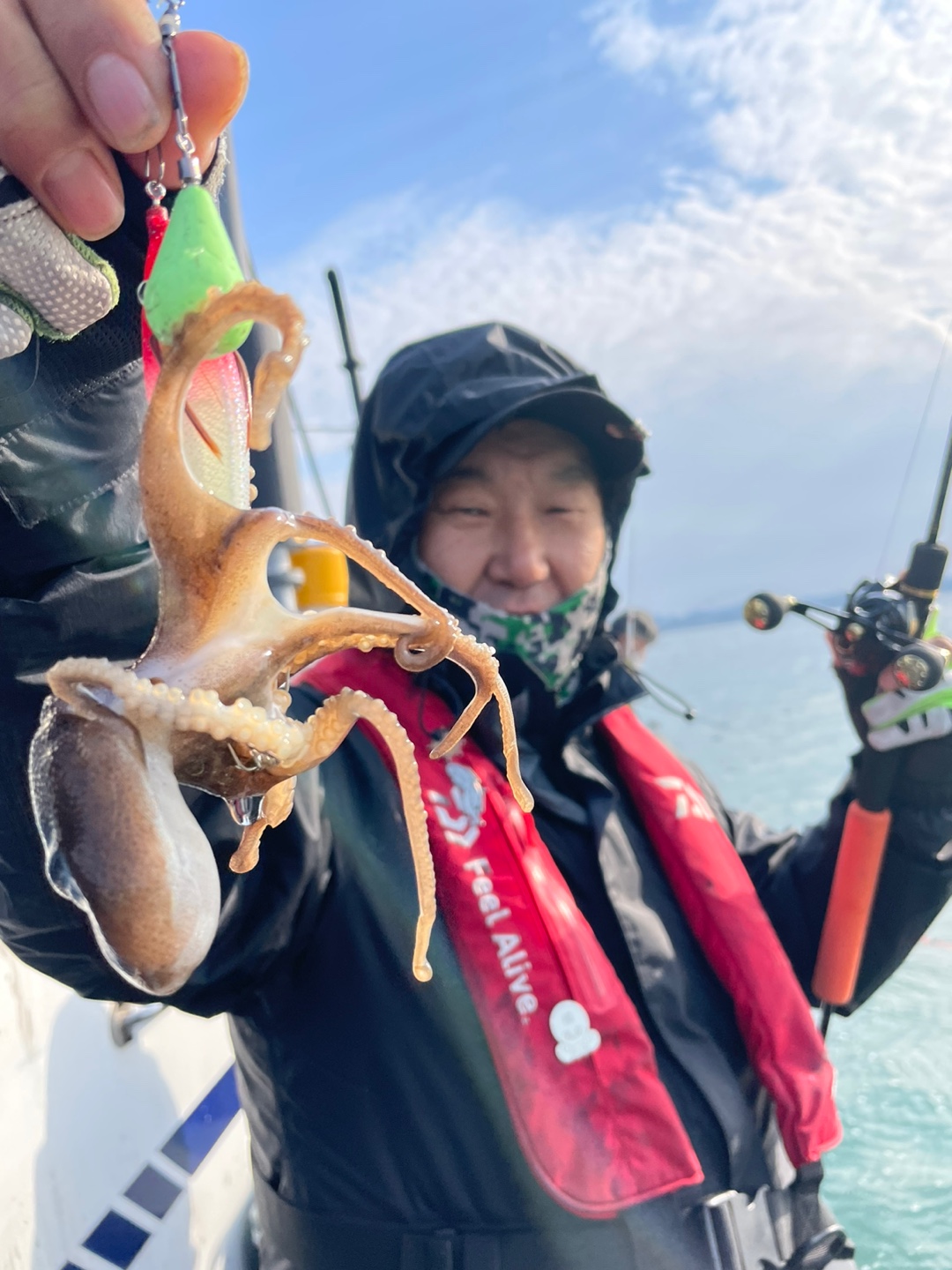 오늘도 대성호는 우리 손님들과 잘 놀다 왔습니다 요즘 같은 시기에 찾아주신 우리 조사님들께 한마리라도 더 잡게 해드리려고 열심히 주꾸미찾아돌아다녔네요~그 결과 최소 50수~최고 100수까지~평균 70수 정도는하신듯합니다 물때가 점점 좋아지니 조금은 더 기대를 하고 오셔도 될거같습니다