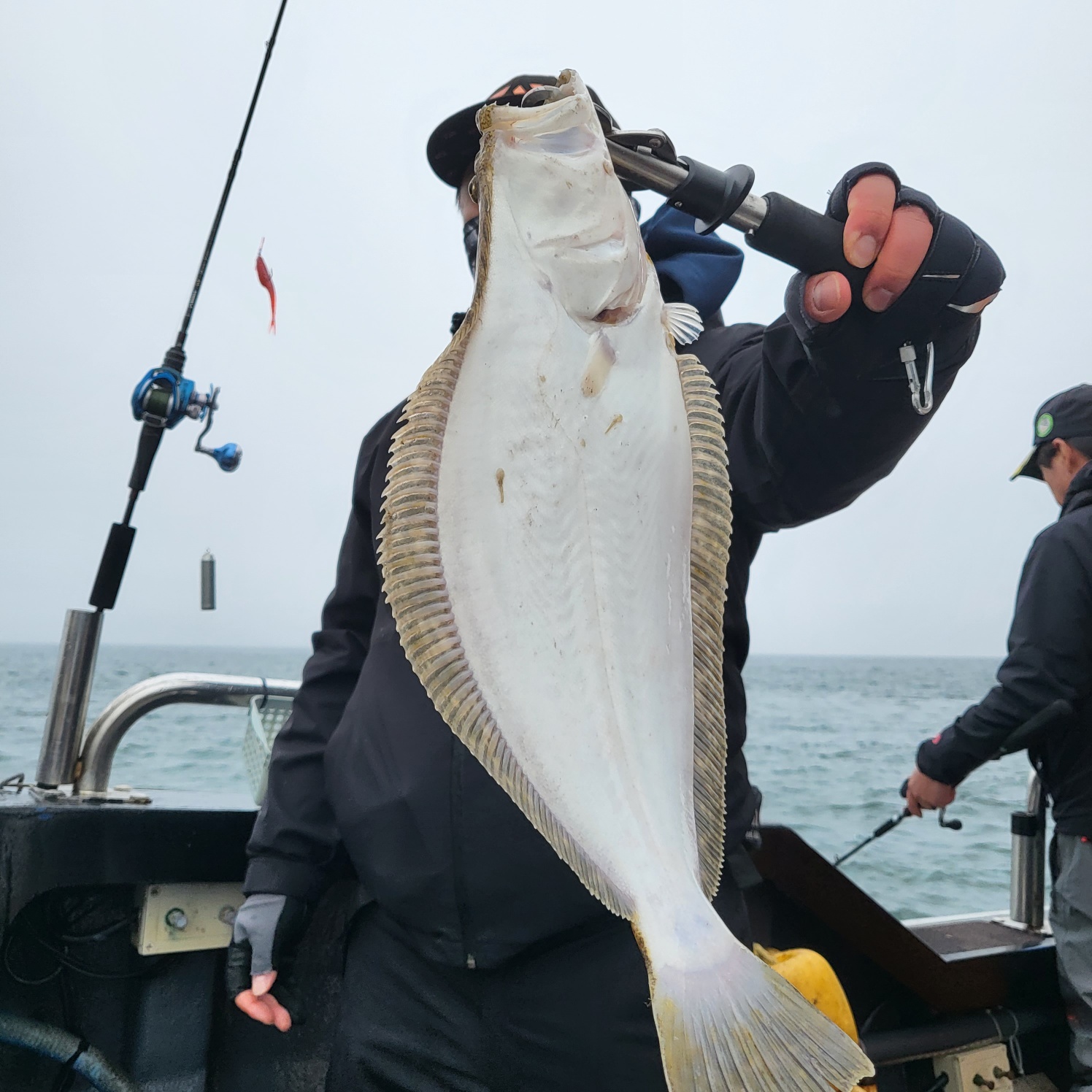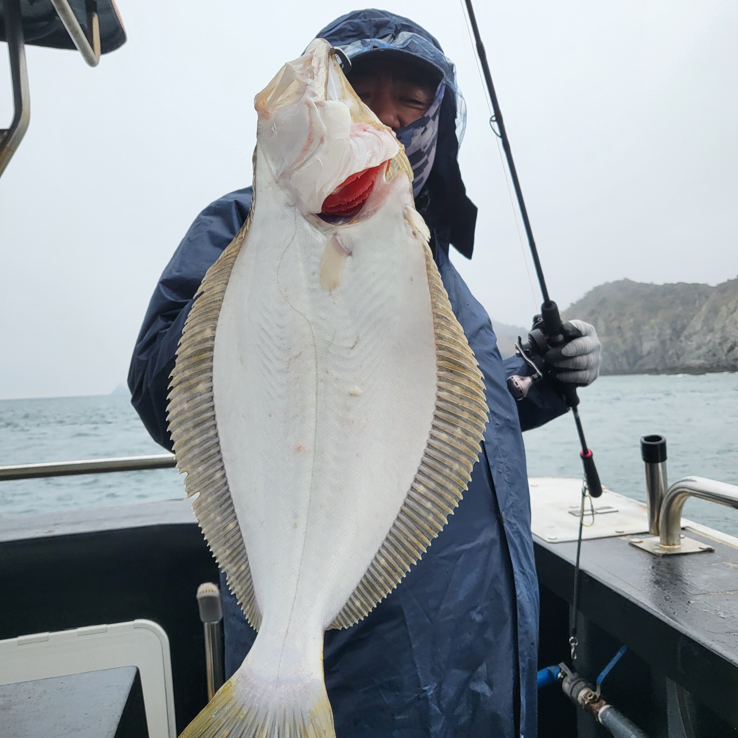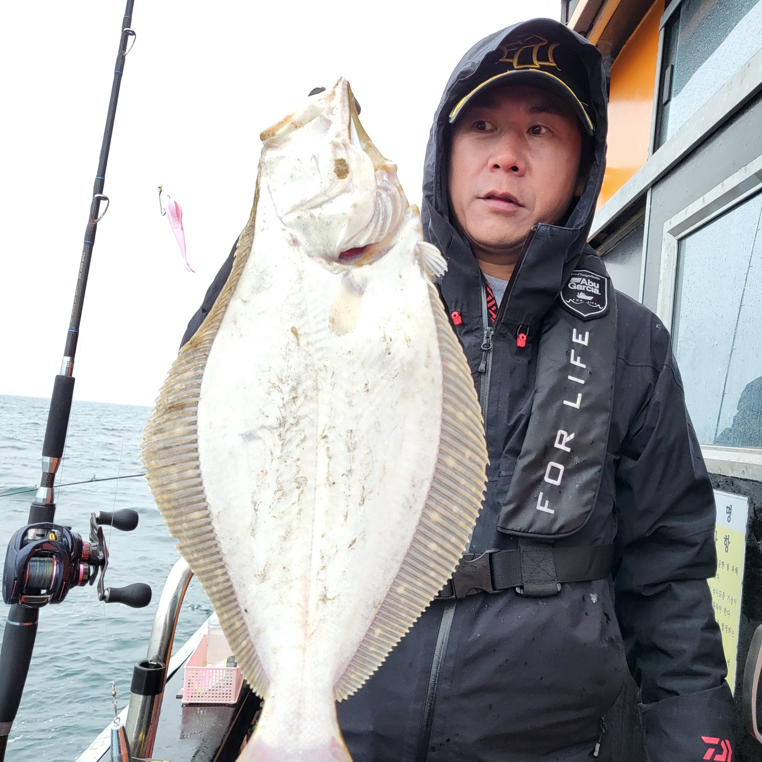 삑~ 잠시뒤 히트~싸이즈 좋은 광어가 올라오네요~