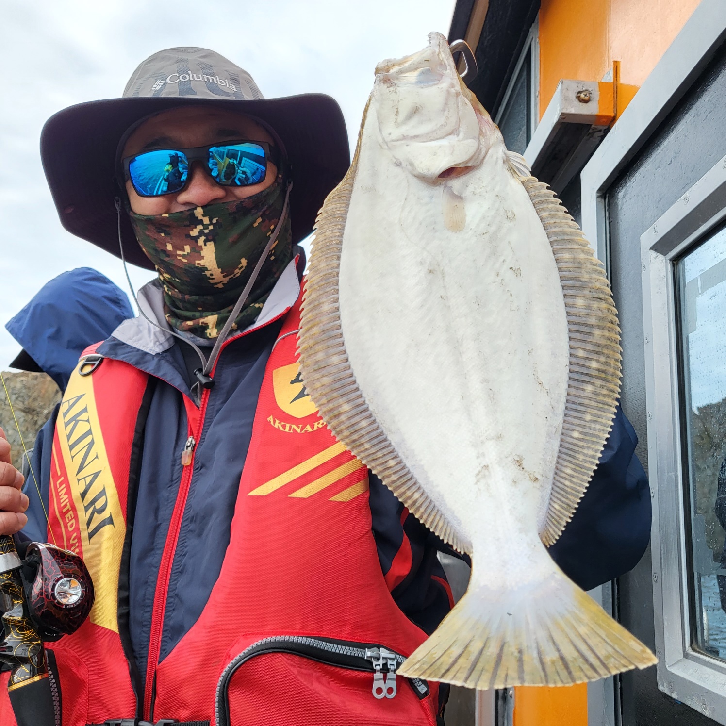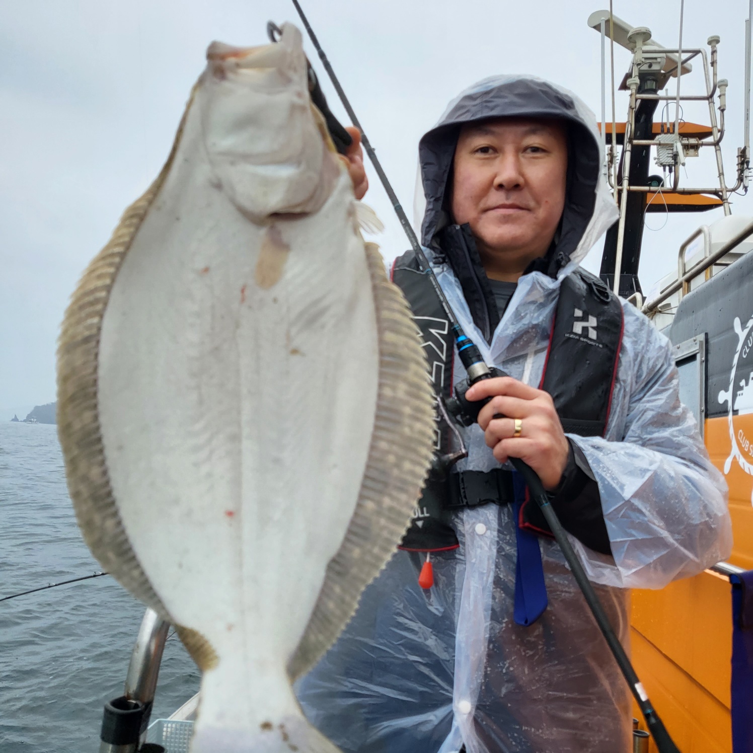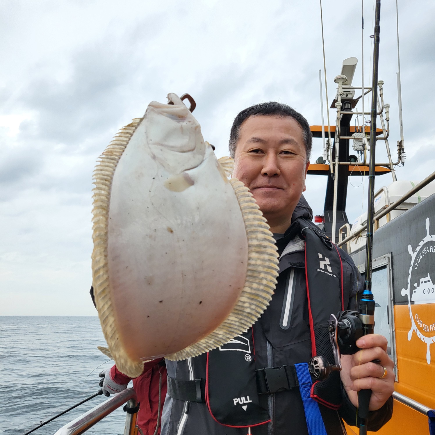 삑~ 잠시뒤 히트~싸이즈 좋은 광어가 올라오네요~
