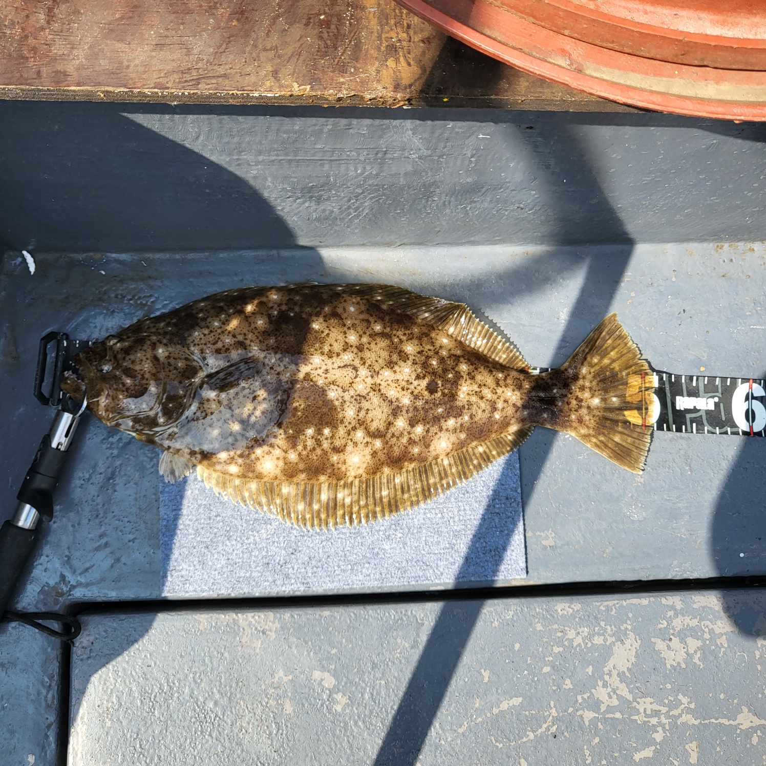 삑~잡시후 히트~~그러나 바늘을 너무깊이 삼켜 쇼크리더가 날아가고...잠시뒤 히트~6짜가 올라오네요
