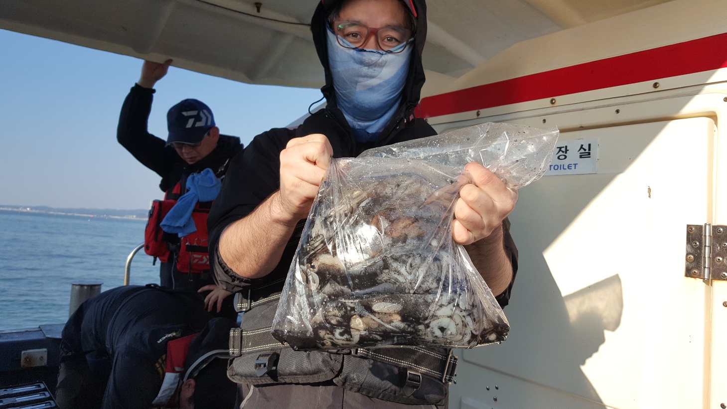 아침에는 많이 해매고 다녔네요그부분만 아니였어도 조금더 나은 조황으로 보내드릴수있었는데아쉽습니다 그래도 열심히 멀리까지 다녀와서조금이나마 잡고왔네요^^감사합니다따로 갑오징어는 안가고 거의 주꾸미조황입니다^^갑이가 많이컸네요^^ 마지막사진 두장은 첫낚시 기념사진입니다^^