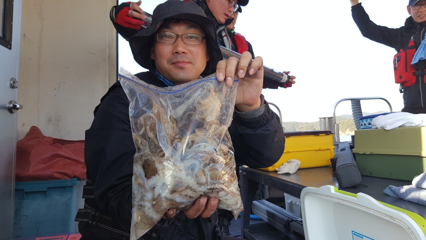 하루종일 빗속에서 쭈꾸미 잡으시느라 고생많았습니다.물때는 좋지만 바다상황이 항상 만만하진 않네요.많이 나올때는 전체적인 조황차이가 별로나지 않지만 이런날엔 개인간의 조황차이가 많이 나네요.이런저런 코치를 해드려도 고집이 세신분이 많네요.오늘 모두 수고 많으셨습니다.감사합니다.