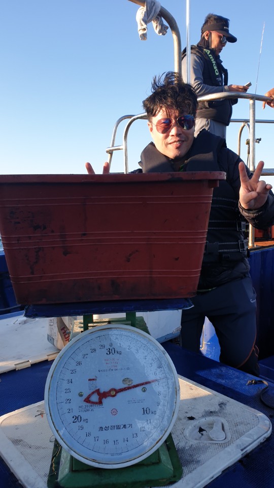 아침부터 안개가 살짝있었지만 시간이 지나면서 꾸준히 잘 나와준 하루였읍니다단지 수심이 깊어서 팔좀 아프실것같아요....ㅎㅎ다들 고생 하셨읍니다오늘 첫 쭈꾸미 입문하신 조사님도 3.5Kg등록하셨읍니다 ㅎㅎ
