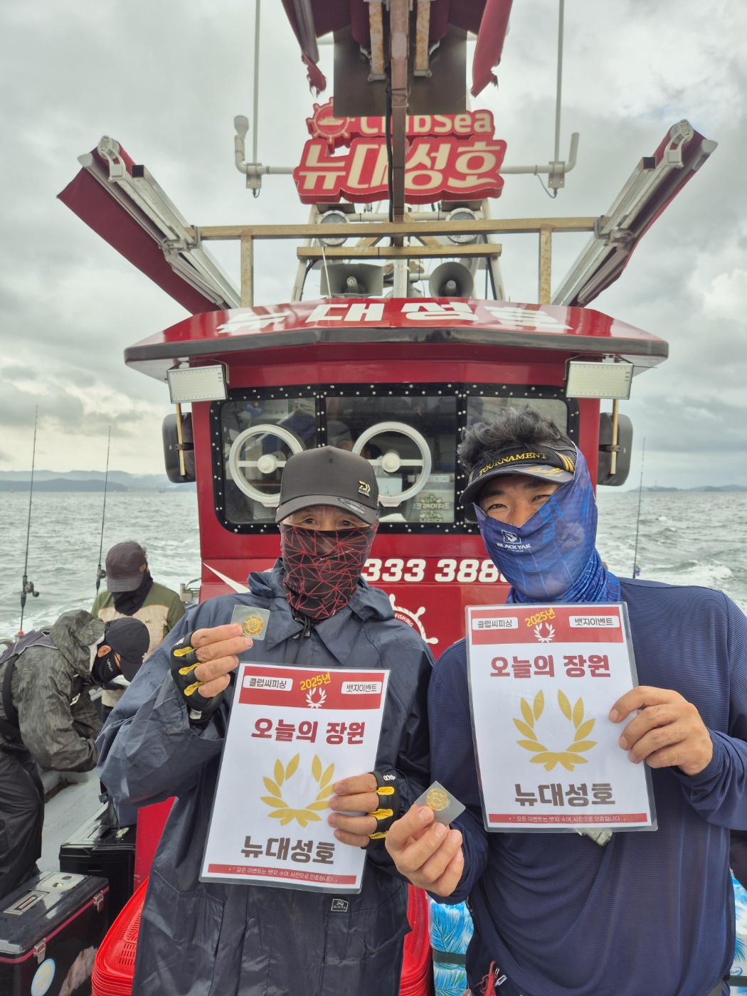 11월 26일 뉴대성호 양한성, 김은철님11월 26일 대성1호 노재성님11월 26일 수나2호 이성원님11월 26일 블루원호 나근장님 (이혜진 명예)11월 28일 블루원호 홍순일님11월 28일 수나2호 이승학님11월 28일 대성호 선순보님11월 28일 뉴대성호 조현효, 구기성, 김상호님11월 29일  대성1호 조현효님 11월 29일 대성호 방원일님11월 29일  수나2호 김동현님11월 29일  뉴대성호 구기성님11월 29일  마린호 김병현님11월 29일  블루원호 김상호님11월 29일  화성호 안재홍님11월 29일 대양호 민현기님11월 30일 마린호 김병현님11월 30일 블루원호 조현효님11월 30일 대성1호 오원재님11월 30일 대양호 안재홍님11월 30일 수나2호 장명진님11월 30일 대성호 이진영, 김상호님11월 30일 뉴대성호 오창렬, 이민우님 12월1일 뉴대성호 오원재, 김은철, 양한성님