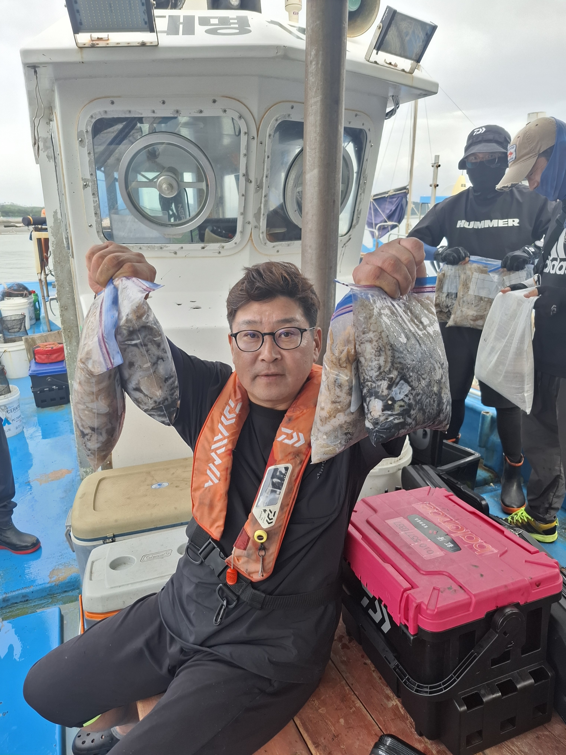 오늘 대명1호 7명 모시고 출조 다녀왔습니다.^^지난번 120마리로 마무리 했던 월남댁^^오늘은 170마리로 개인기록 갱신!!다른 조사님들께서는 200수~ 250수 하셨습니다.^^오전에 조~금 힘들었다가 오후쯤 좋은포인트 만나서 느나~손님들 팔 아프시다고 하셨다네요^,^ 대명1호 7인승이지만 9인~12인승 크기입니다.넉넉하게 간섭없이 공간 좋으니 많은 이용 부탁드립니다.^^