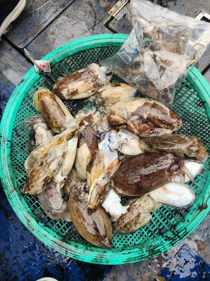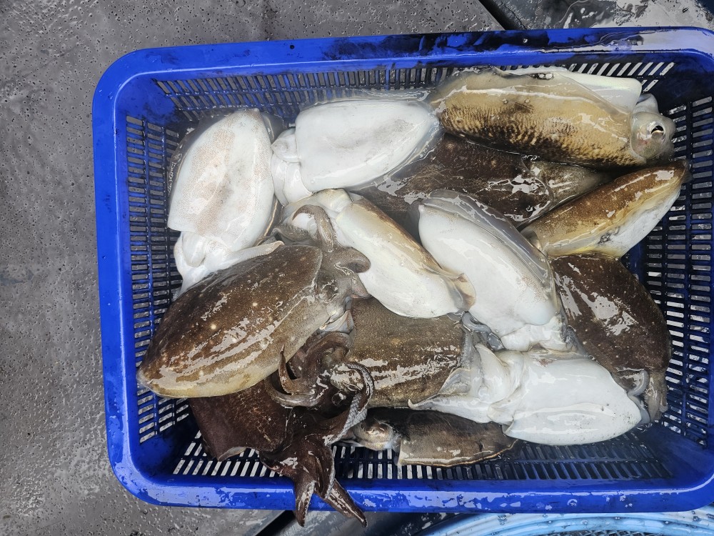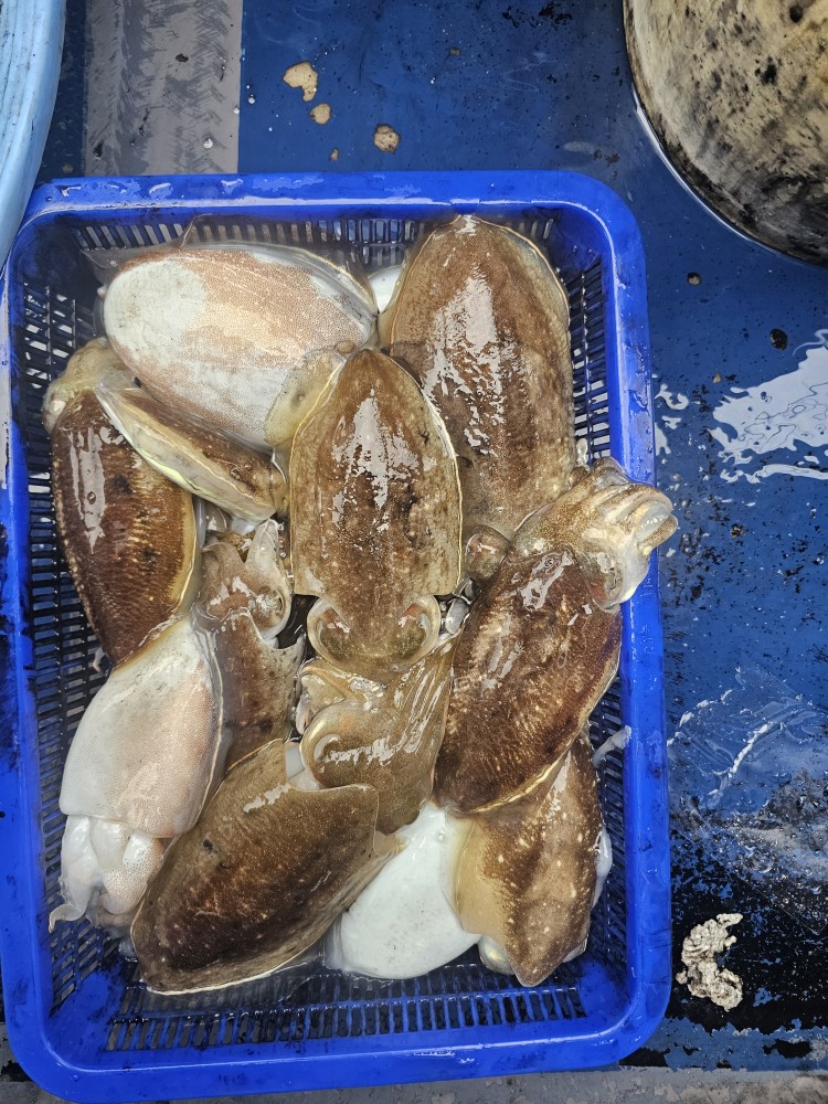 주꾸미와 골프공만한 갑오징어가.....어쩌다 카드만한 갑이가....
