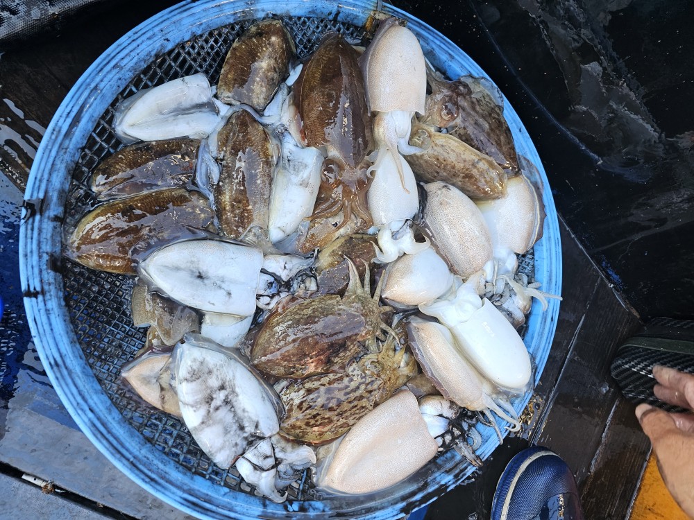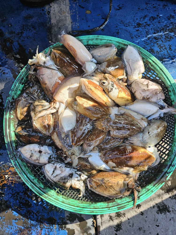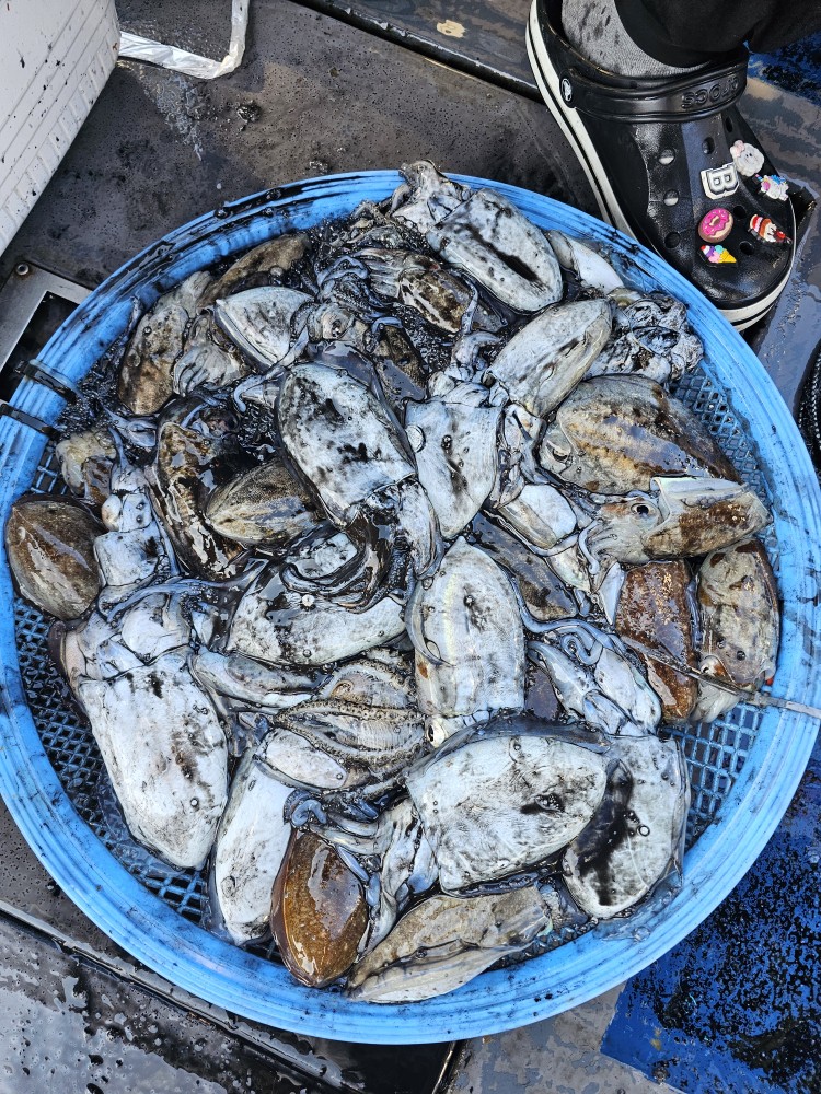 저희수나2호를 찿아주신 조사님들께 감사드립니다. 오늘도 수고 많이 하셨습니다. 10월25일 수나2호 조황사진입니다.  갑오징어 잡고왔습니다...