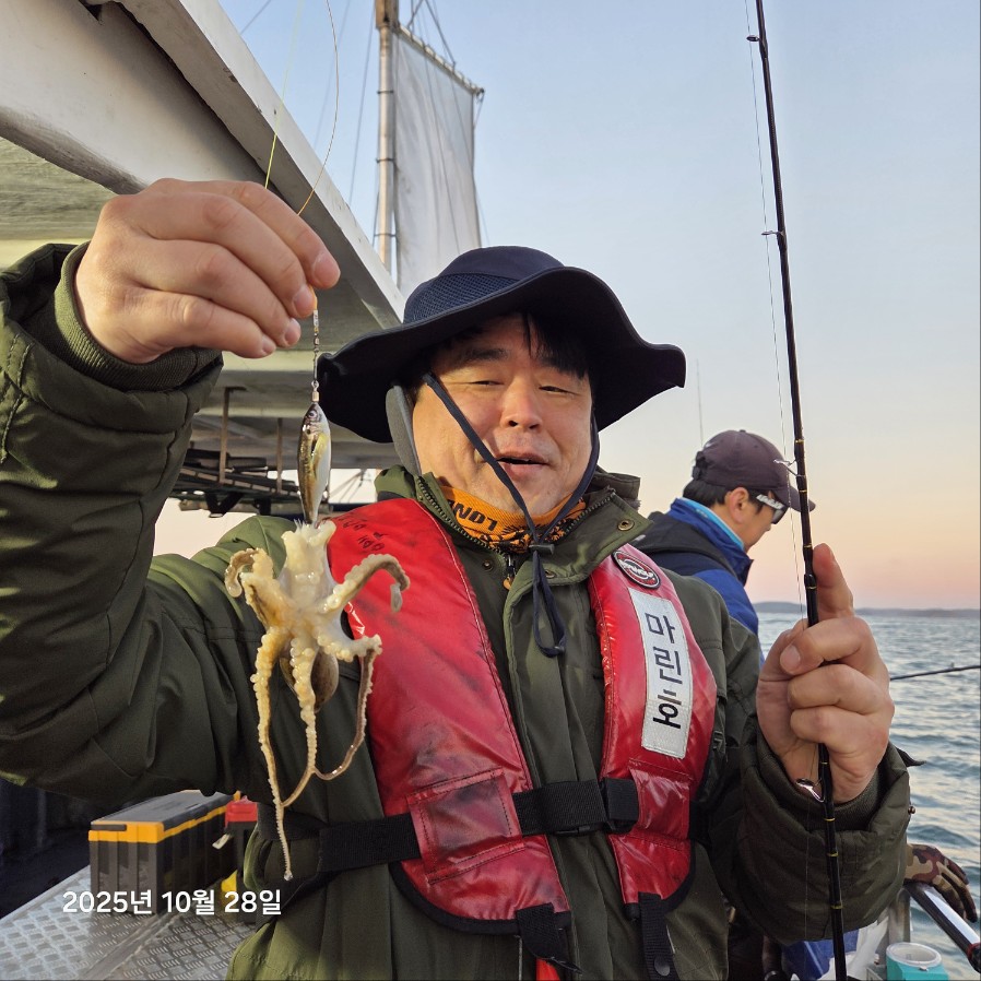 오늘도 마린호는 즐겁게 다녀왔습니다 오전부터 잘 자오지않는 쭈와 숨바꼭질을 하고다녔네요 오늘은 마린호가 졸업식을 마치고 가을 쭈시즌을 무사히 종료하게되었네요 찾아주신 조사님들 넘 감사드리고 마지막까지 함께 해주셔서 너무 감사드립니다오늘 장원 90수로 마무리했으며 다른분들은 20~60수 정도로 마무리했습니다 오늘도 수고하셨습니다 오늘의 장원 김*현님 축하드립니다 오늘또한 간식 ㅎㅎ 감사합니다